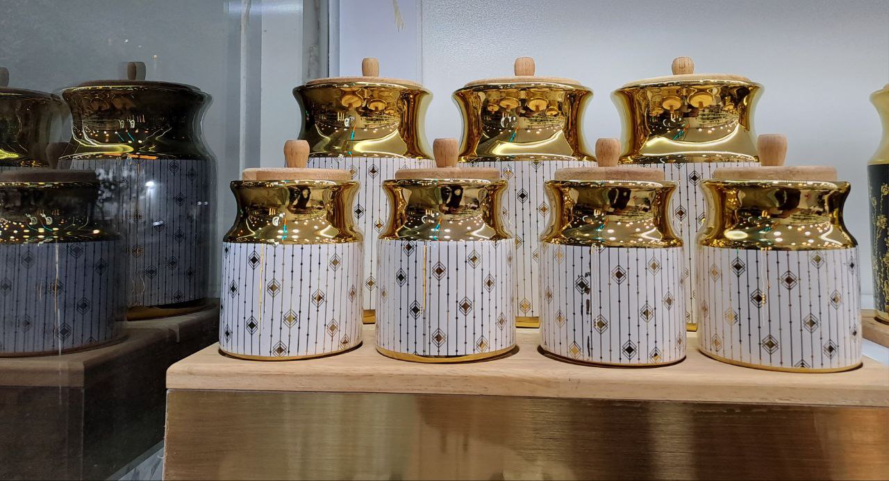 سرویس پاسماوری طلایی چینی با استند چوبی (رنگ ثابت و لوکس)